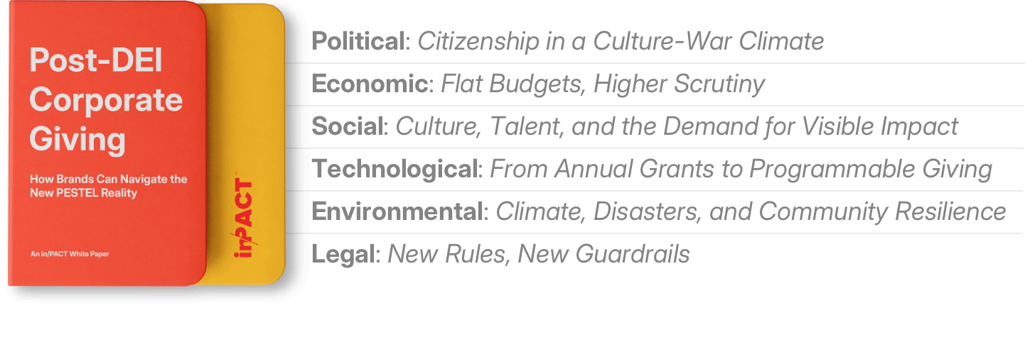 Thank you for requesting our white paper on post-DEI corporate giving. You can access the full PDF from the link below. On our site you’ll also find case studies and examples of how leading brands are redesigning their programs for 2026.