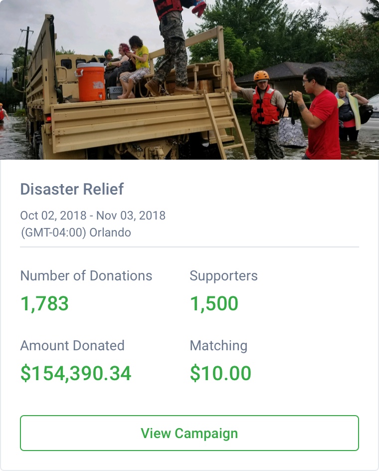 In times of disaster, individuals and businesses want to help quickly. GoodCoin offers ready-to-launch disaster relief campaigns that can be activated overnight during crises.