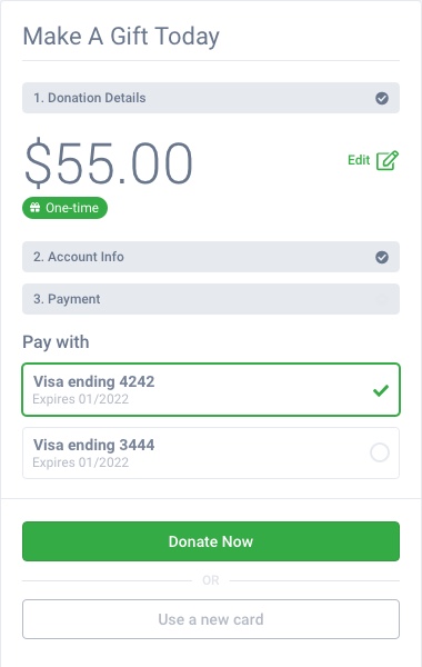 Round-up donations: Enhance your clients' giving experience by transforming spare change into meaningful support with effortless round-up donations.
